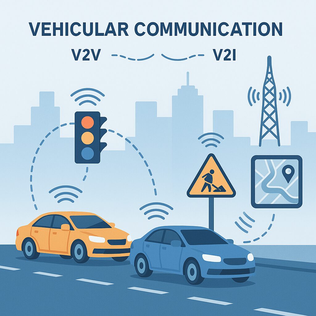 Vehicular communication, also known as vehicle-to-vehicle (V2V) and vehicle-to-infrastructure (V2I), is an emerging technology that allows vehicles to communicate with each other and with the surrounding infrastructure to improve traffic safety, efficiency, and flexibility.